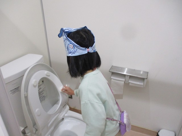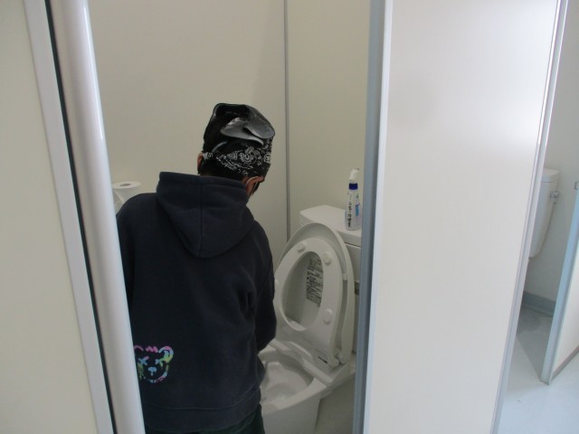 児童玄関のマットを動かし、マットの下側もきれいに掃いたり、トイレの便器もきれいに拭いたり、こすったりして、進んで取り組んでいました。