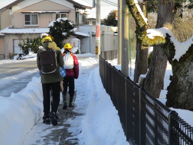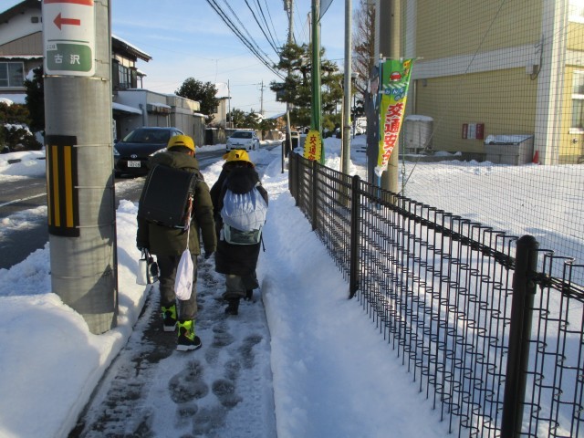 今朝は、氷点下まで気温が下がり、厳しい冷え込みでした。道路もいたるところで凍っていましたが、子供たちは、登校班で1列に並び、滑らないように気を付けながら歩いて登校してきました。
