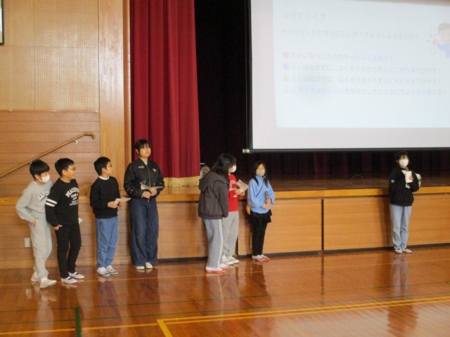 「ゲームを通して、環境や保健のことを詳しく知ろう」という目当てで、集会を行いました。