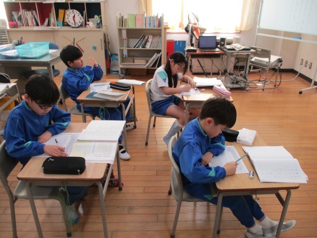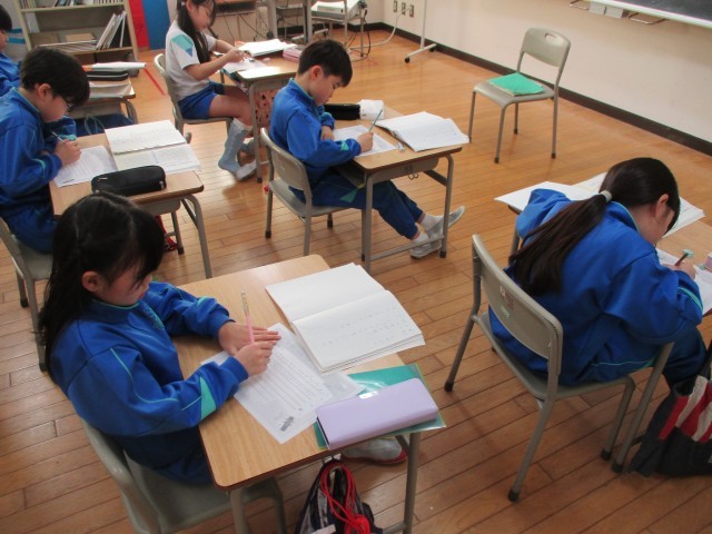 「すてきなところをつたよう」の学習では、教科書の例文を参考にしながら、6年生のすてきなところを文に表そうとしています。6年生に自分の思いが伝わるように、読む人のことを考えて分かりやすく書くことができるようにがんばっています。
