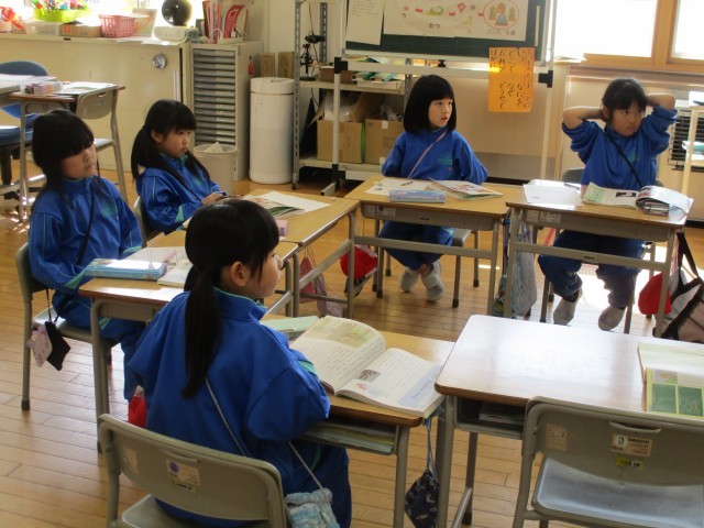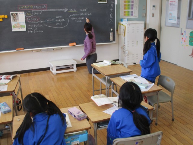 1年生の道徳では、「いのちの力」について考えていました。手のないお母さんザルが、3匹の子ザルのお世話をして育てている話について考え、話し合うことを通して、体が不自由でも懸命に生きていること、お母さんが子供を大切に育てる思いなどを感じ取ったようです。