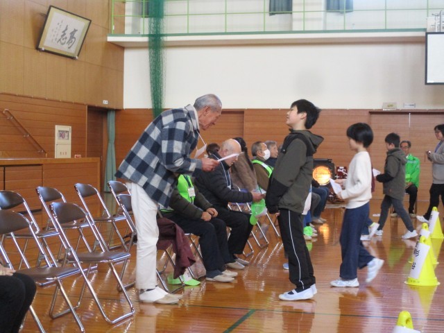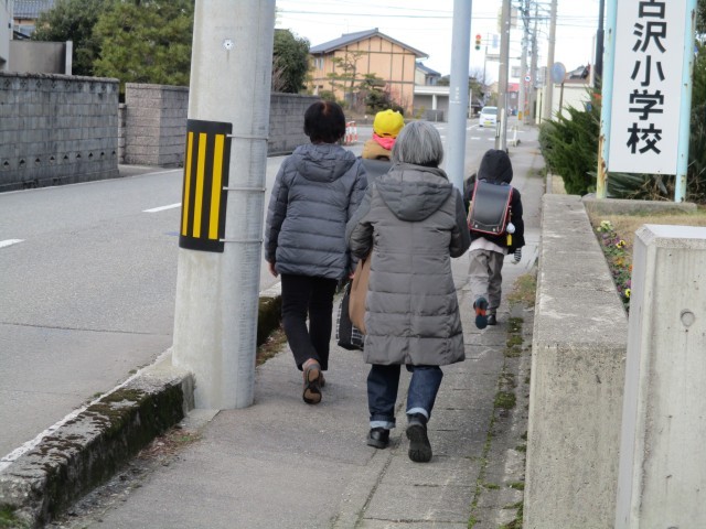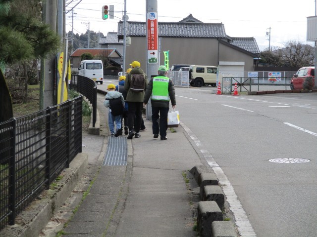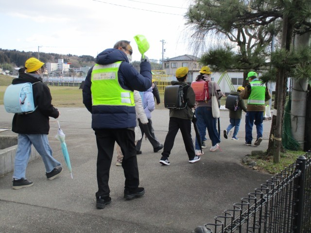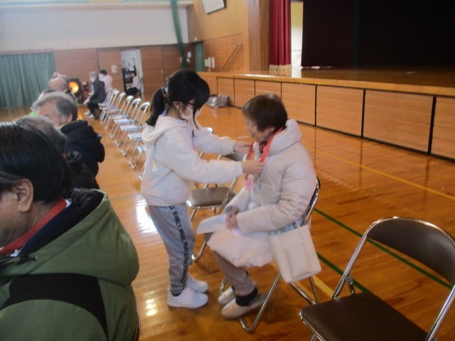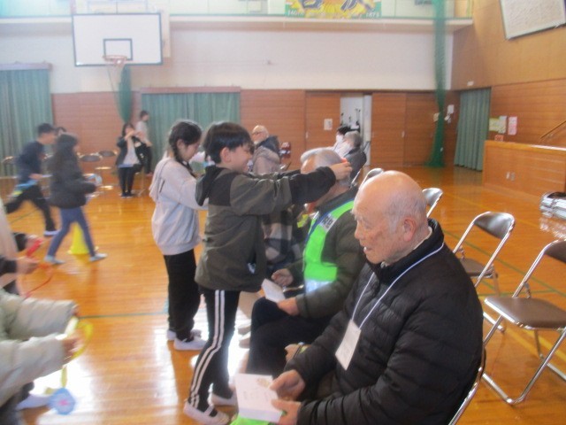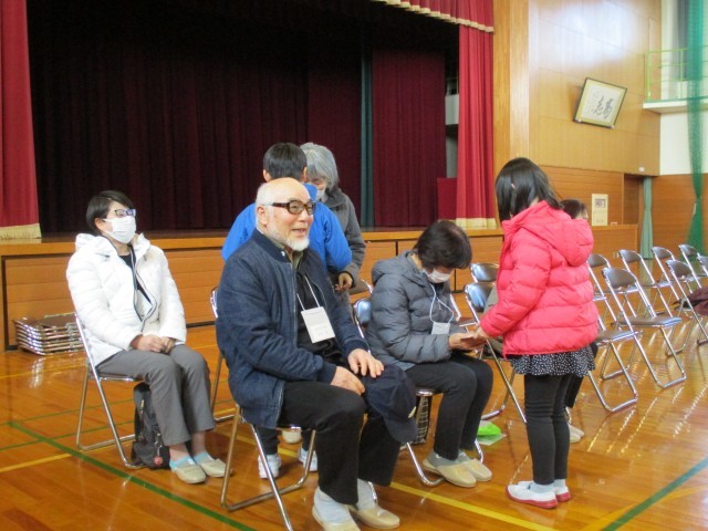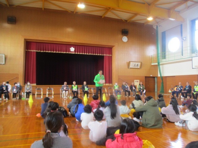 子供たちが事前に書いた手紙やメダルを代表の子からお渡ししました。全校みんなで歌のプレゼントも行いました。集いが終わった後、今日も子供たちとともに歩いてくださいました。見守り隊の皆様のおかげで、子供たちは今年度も安全に登下校することができそうです。本当にありがとうございます。
