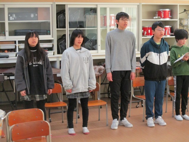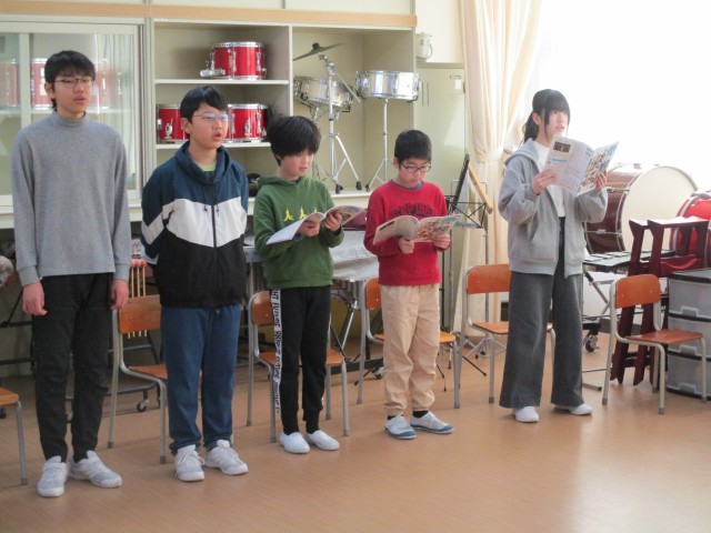 今朝も朝の歌の時間に、6年生は音楽室で、卒業式に歌う歌の練習をしていました。遠くに歌声を届けるように、伸びやかに歌っています。聞き入ると、胸がジーンとしてきました。