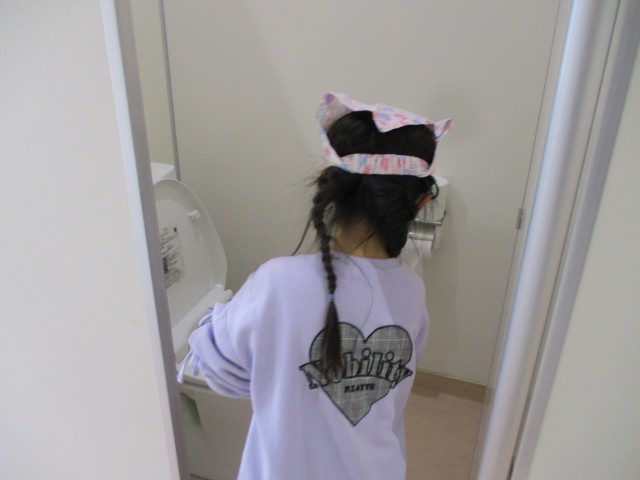 今日の清掃は3つの学年の子供たちだけで行いました。1年生も、トイレ掃除をがんばっています。トイレ掃除の仕方が書かれているカードを見ながら一生懸命にきれいにしようとしていました。