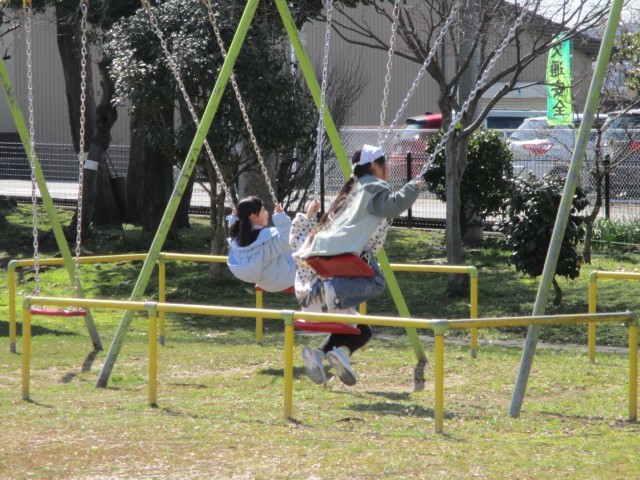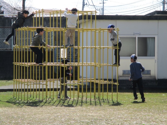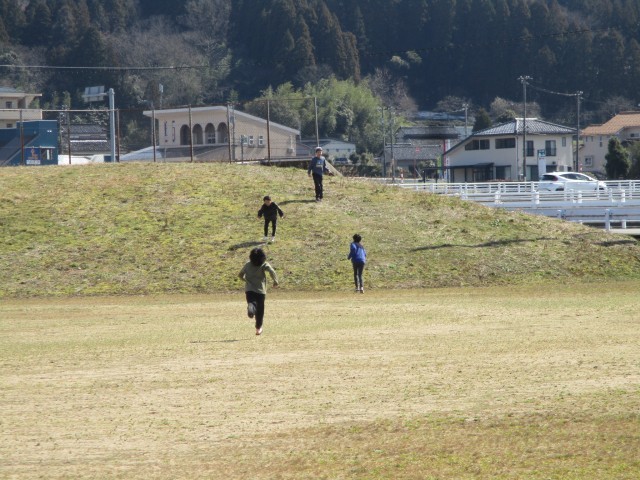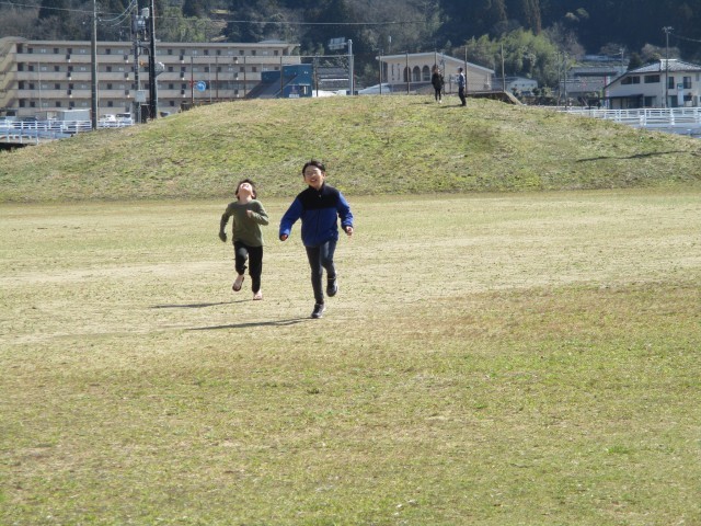 朝は寒かったですが、日中はよい天気になり、暖かくなってきました。この暖かさに誘われて、子供たちも昼休みに元気にグラウンドへ出てきました。外で遊ぶのは久しぶりなので、思い切り体を動かして遊んでいました。