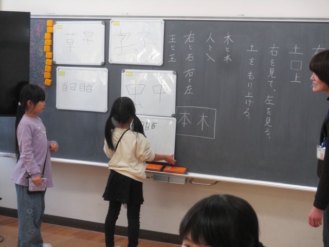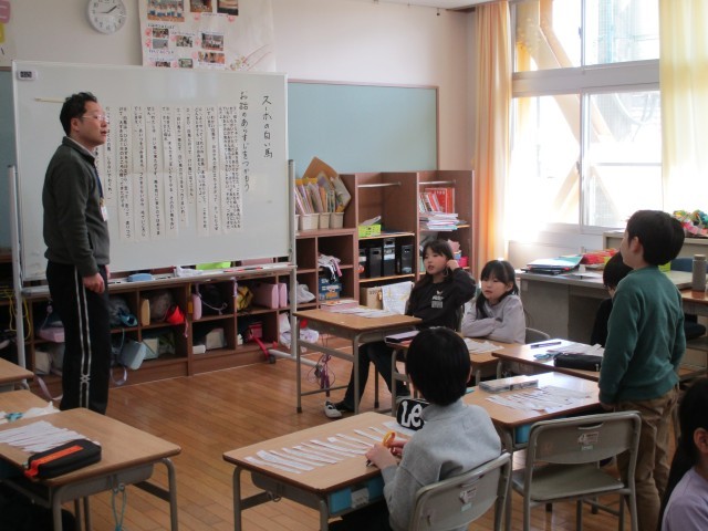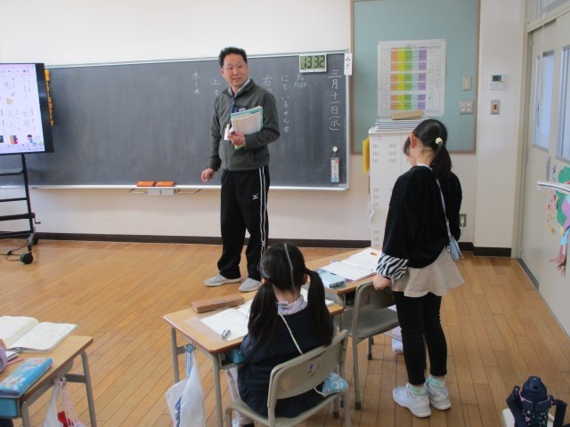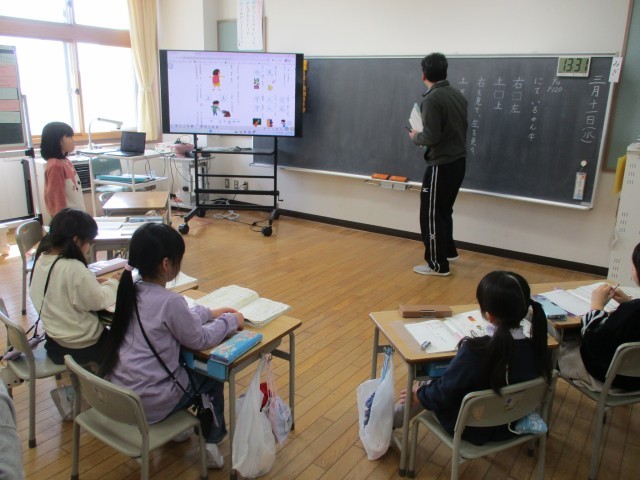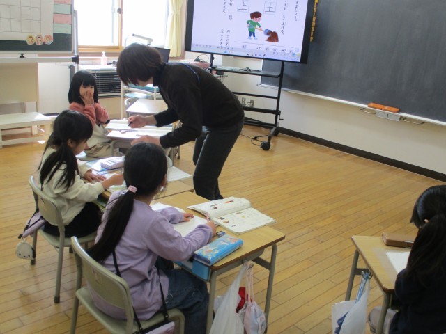 国語の時間にも、1年生と2年生が同じ教室で前と後ろで学習しました。先生の話や友達の意見をよく聞き、集中して取り組んでいました。このような学習形態にも少しずつ慣れてきているようです。