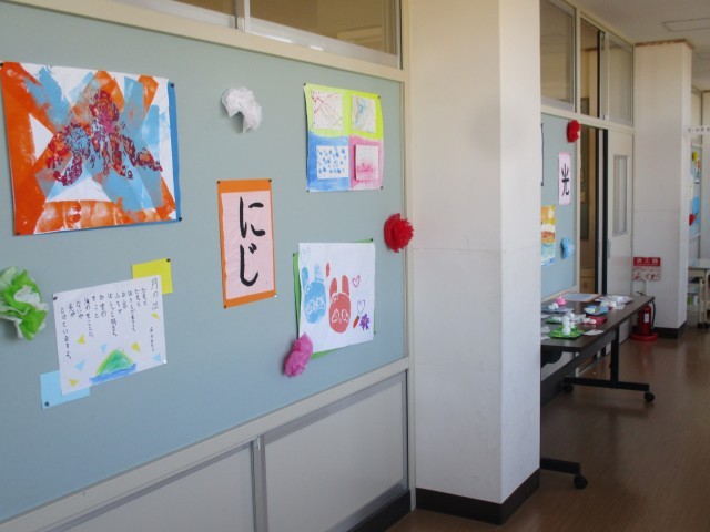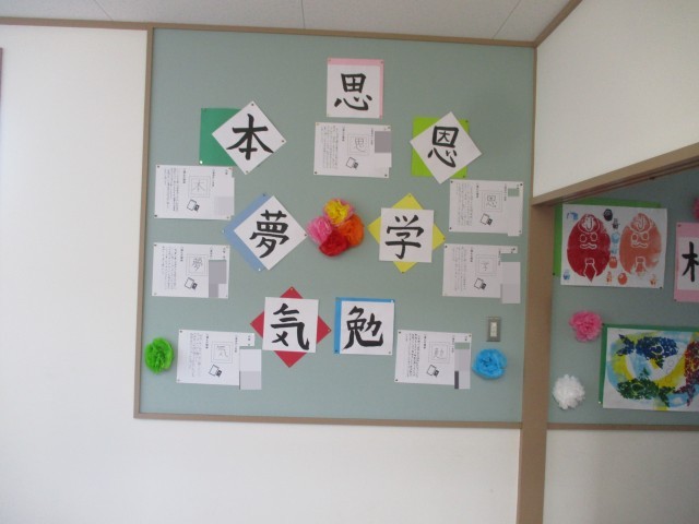 卒業をお祝いする環境を整えています。昨日、教職員で掲示板の飾りを貼り替えました。廊下、階段の踊り場などが、きれいに飾り付けられました。体育館へ向かう廊下には、6年生のお気に入りの漢字一文字が飾られています。