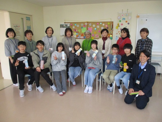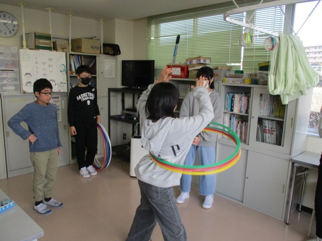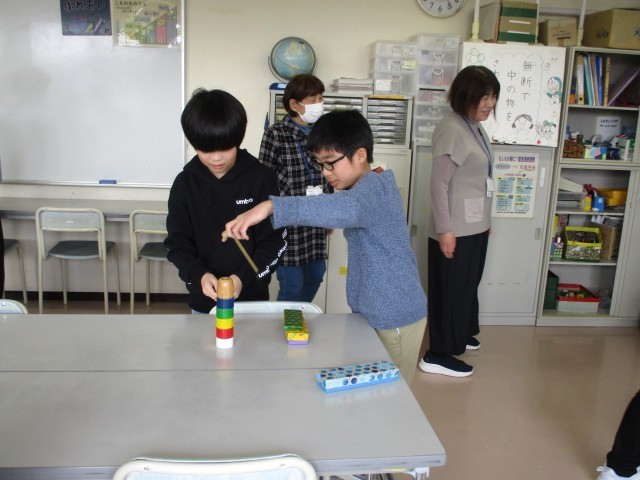 今までお世話になったふれあい学級の指導員の皆さんが、6年生の卒業をお祝いしようと招待してくださいました。また、手作りの筆箱をプレゼントしてくださいました。6年生の子供たちは、久しぶりのふれあい学級で、「なつかしい」といろいろと遊び道具を見付けては楽しそうに遊んでいました。指導員の皆さんからは、低学年の頃の思い出をたくさんお聞きしました。