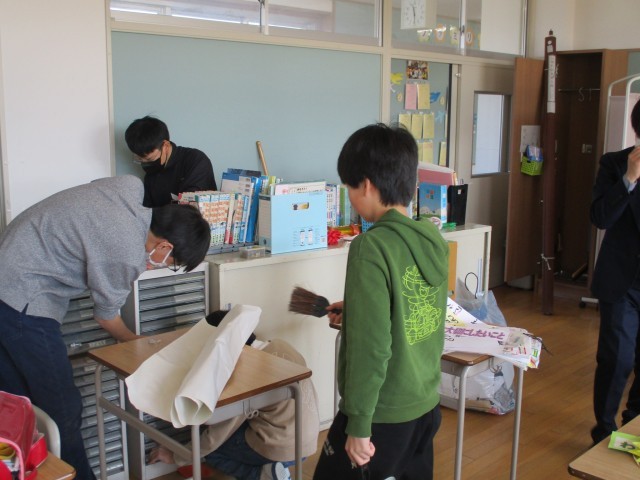 5、6年生は、明日の卒業式を前に、教室や学習室、児童玄関をきれいにしていました。これまで使ってきた校舎に感謝の気持ちを込めて取り組んでいます。