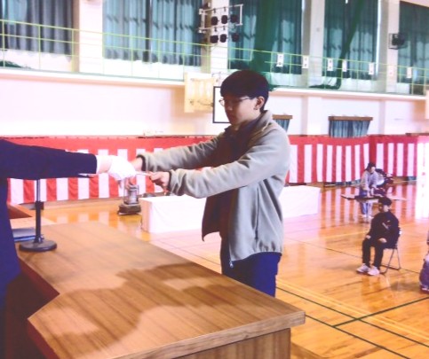 その後、日頃からスポーツに取り組み、校内チャレンジ陸上記録会でも優秀だった2人が、スポーツ功労賞を受け取りました。