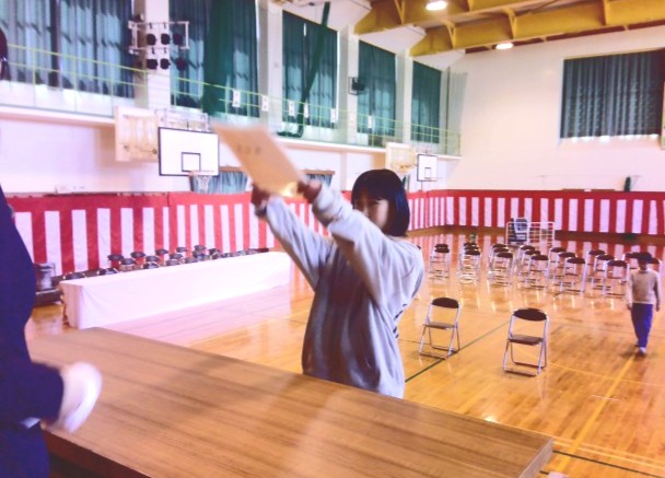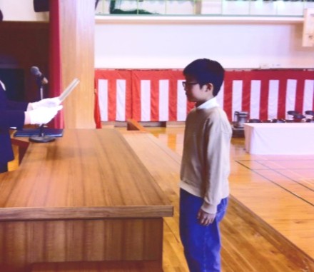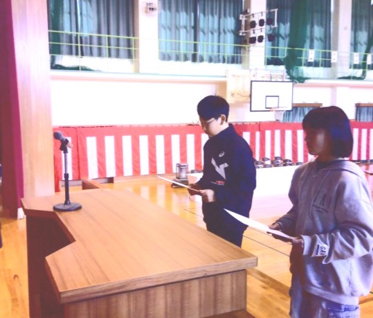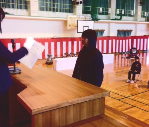 6年生の修了式を行い、一人一人に修了証が手渡されました。明日の卒業証書を受け取るときと同様に、一人一人姿勢よく、しっかりと受け取っていました。