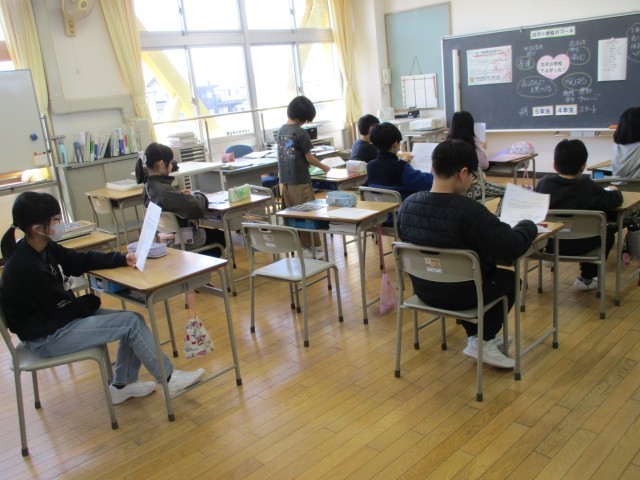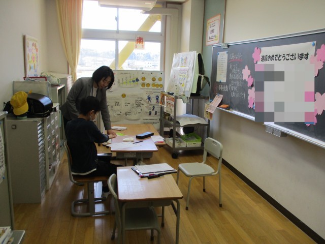 進級した子供たちは、新たな教室で、新たな仲間と担任の先生と過ごしました。新しい教科書を受け取ったり、目当てを考えたりしていました。明日の入学式の準備もあり、学級でゆっくりと過ごすことができませんでしたが、これから新たな学級づくりをみんなでしていきましょう。