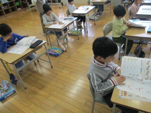 今日は、「5はいくつといくつ」を学習しています。