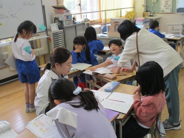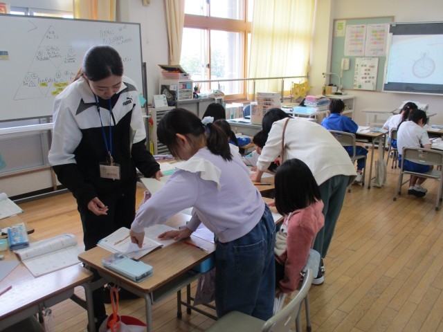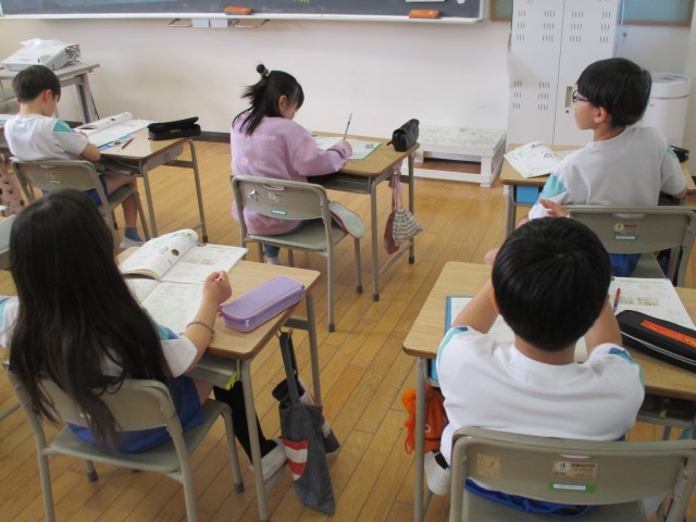 2年生は筆算の問題、3年生は時間の問題に一生懸命取り組んでいました。自分たちで集中して取り組む姿が多く見られるようになってきました。