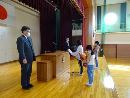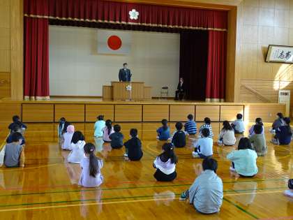 3月30日離任式を行いました。2名がこの古沢小学校から離任しました。