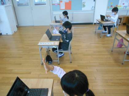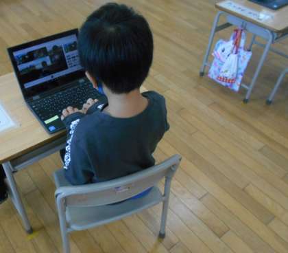 21日に、クロムブックの使い方を勉強しました。子供たちは、キーボードを使って数字を入力したり、ビデオ通話をしたりしてクロムブックに親しみました。