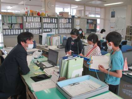 今日の4時間目の国語の時間に、教頭先生と用務員の方に仕事の内容をインタビューしに行きました。「聞き取りメモのくふう」の学習で学んだことを活かして、聞きながら一生懸命にメモをしました。