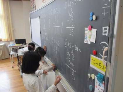 算数で学習している引き算の筆算の学習も終盤に差し掛かっています。子供たちは正確な計算力を身に付けるために練習を繰り返し、少しずつ自信を深めています。昨日行った授業の問題でも、全員が手を挙げて取り組んだ計算について発表しました。