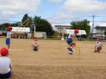 jump!JUMP!ジャンプ! 公開日 2021/05/23 更新日 2021/05/23 最新の出来事 3〜6年生の今年の巧緻走は「jump!JUMP!ジャンプ!」です。 ハードルを跳び越えて、フープを跳び、カードを引き、様々なジャンプをしてゴールをします。カードの中身は日々のチャレンジ活動で強化している跳躍系の種目を入れました。 引いたカードによって、順位に大きく影響します。 自分にとって得意なカードが出たでしょうか?