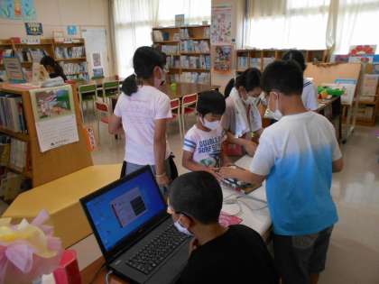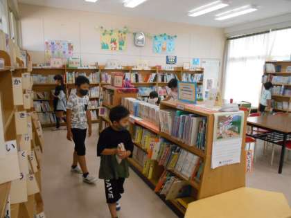 初日の今日は、放送での呼びかけもあり、多くの子供たちで図書室が賑わっていました。