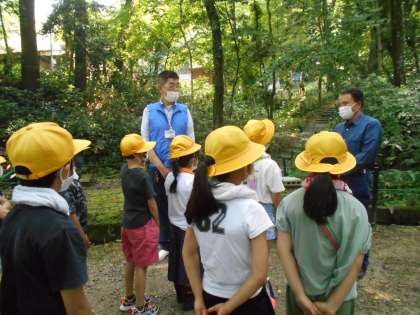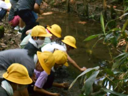 子供たちは自分たちで採ってきたカワニナを、ホタルの幼虫が食べて大きく育ってほしいとの願いを込めて放流しました。