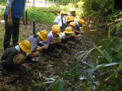 6月9日、ファミリーパーク内の「ホタルのおやど」へ、昨日採ったカワニナの放流に行きました。