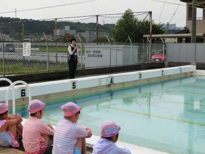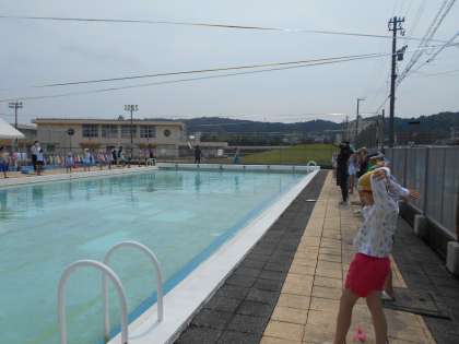 プール開きがありました。2年ぶりのプール学習に子供たちはとてもうれしそうに、プールサイドに集まりました。