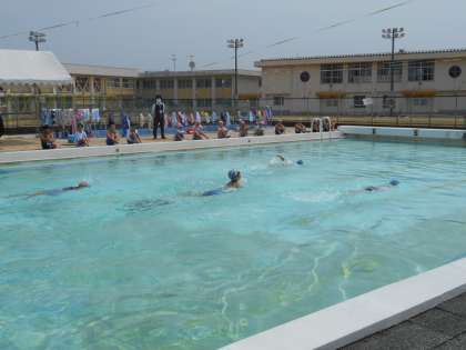 模範水泳では、5、6年の代表者がそれぞれの得意な泳ぎを披露してくれました。