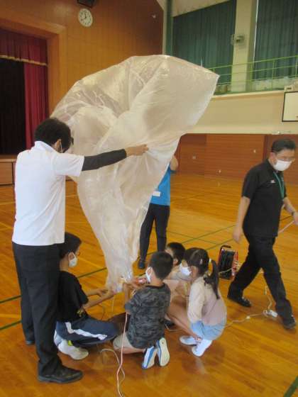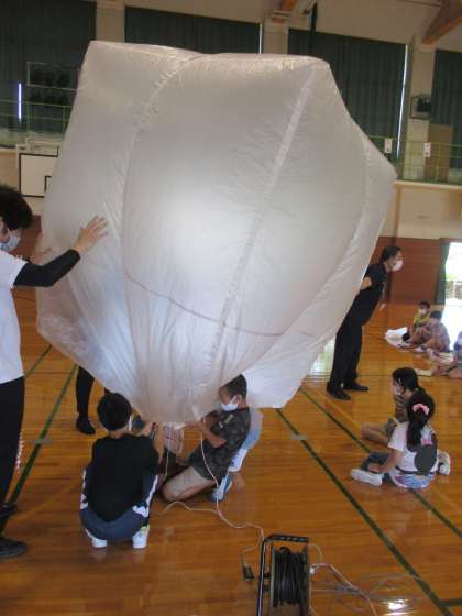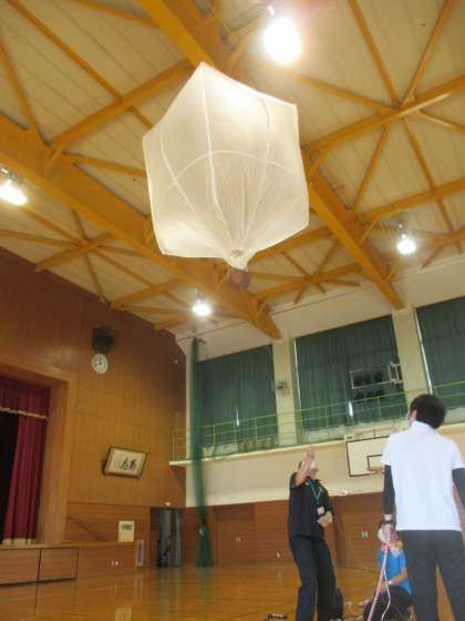 最初は熱風が足りなくてなかなか上まで上がらなかったのですが、最後に天井まで届いて大歓声が上がりました。