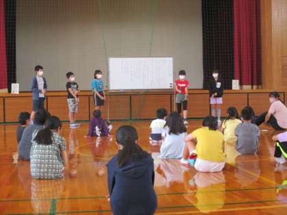ひまわりタイムに、全校会議を行いました。議題は、休み時間の過ごし方です。感染症対策をしながらみんなが楽しく過ごすにはどうすればよいかについて、活発に意見を出し合うことができました。6年生を中心に、みんなでよりよいくらしをつくっていこうとする姿勢がすばらしいです。