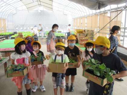 先日、冬野菜づくりに向けて、校区の苗販売店を訪問しました。今回は、キャベツと白菜、ブロッコリーの苗を準備していただき、全員で持ち帰りました。一つ一つの苗を大切そうに運ぶ子供たちの姿が印象的でした。