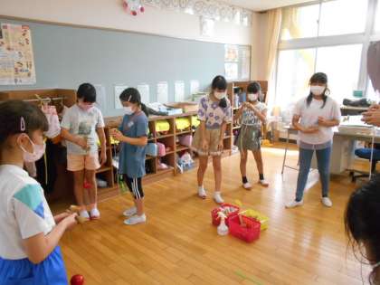 今日のひまわりタイムに、先日全校会議で確認した感染症に気を付けた遊び方で、楽しく遊びました。なわとび、ボール遊び等、学年の枠を超えてそれぞれの遊びをみんなで楽しみました。