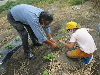 生活科では野菜の世話に毎日取り組んでいます。今回は、世話をしている際にちょうど地域の方が訪れ、大根の適切な間引きの仕方について教えていただきました。