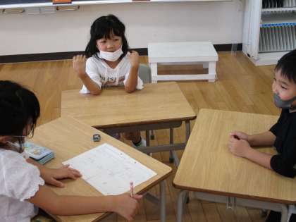 10月の下旬に1年生で行う集会に向けて2つのチームが動き出しました。おもしろいゲームや読み聞かせをする予定です。どんな集会になるのか楽しみです。