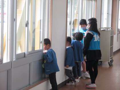 5年生は、古沢小学校の代表として、入学してくる年長児のお世話をしてくれました。検査の補助やトイレのお世話、廊下で待つ時の声がけなど、丁寧に接している姿が見られました。