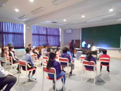 読書月間の企画で、学校司書の先生がブラックパネルシアターを披露してくださいました。本日は、1、3、4年生を対象に行いました。
