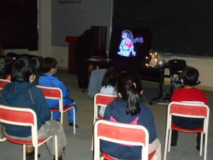 BGMと語りに熱心に耳を傾け、光る挿絵に興味をもって見入っている子供たちの姿が見られました。