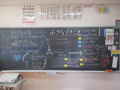 2年生の道徳の学習で、礼儀の大切さについて学習しました。題材を通して、子供たちは礼儀をもって周囲の人に接することで、互いに気持ちのよい関係をつくることができると考えました。その後は、その考えをすぐに実践に移し、いつも以上に丁寧に挨拶をしたり、お礼の言葉を言ったりする子供たちでした。