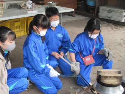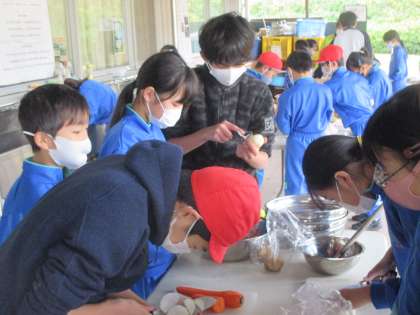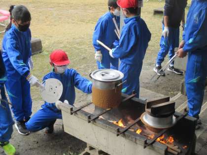 1日目の昼は、野外炊飯でカレーライスを作りました。
