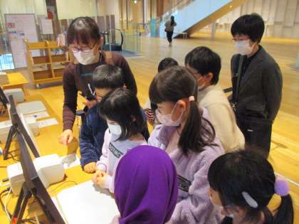 第二学年生活科「公共交通機関の使い方」4 公開日 2021/12/03 更新日 2021/12/03 2年 市立図書館では、最初に2冊の本の読み聞かせをしていただき、その後に本の借り方について教えていただきました。本を借りるシステムは、完全に無人化しているので、内容を理解して操作することが必要です。借り方を覚えると、3万冊もある子ども図書館のフロアへ飛び出していきました。