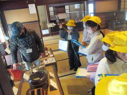 民俗資料館では昔の人々の道具について学びました。昔のこたつや冷蔵庫等、様々な工夫があることにとても驚いていました。