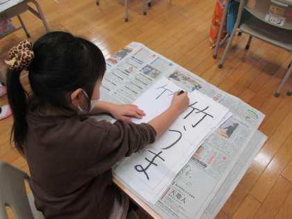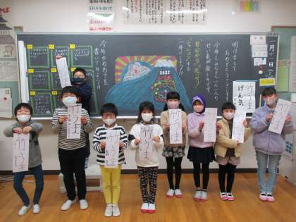 2時間目は、書初大会です。冬休みには、各家庭でたくさん練習してきたのでしょう。冬休み前とは、はっきりと異なった練習の跡が見られました。硬筆墨は今年度までとなりますが、来年度からの毛筆にも、これまで学習してきたことを活かしていってほしいと思います。