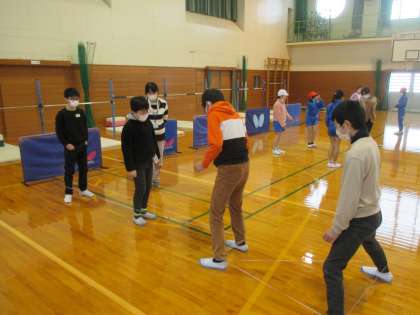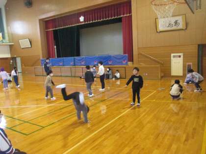 3人でチームになって、色々な高さのゴムを交代で跳びました。