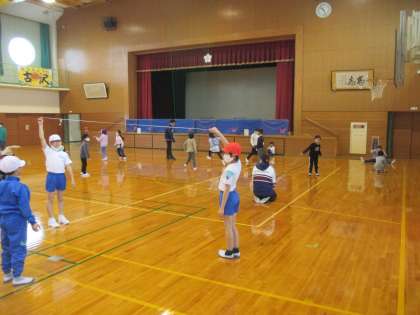 助走をつけて跳んだり、はさみ跳びをしたりするなど、自分で工夫しながら楽しんでゴムを跳んでいました。
