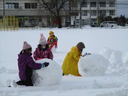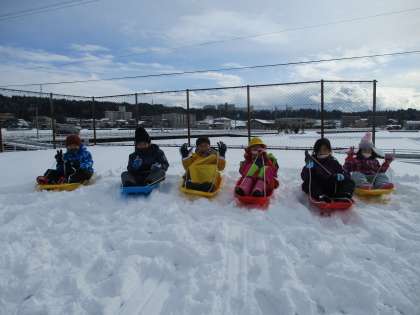 1年生は、19日(水)の5時間目に雪遊びを行いました。スキー山をそりですべったり大きな雪玉をつくったりと雪に親しみました。