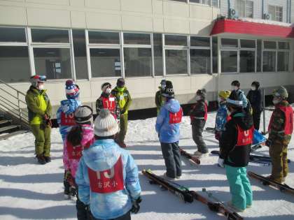 今日はスノーフェスティバルがあり、4・5・6年生は牛岳温泉スキー場でスキー学習をしました。晴天にも恵まれ、絶好のスキー日和となりました。
