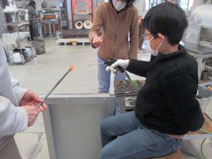 6年生は、卒業記念制作として、ガラス工房でペーパーウェイト作りをしました。一人一人が自分の好きな色やデザインを選んで、作成しました。世界に一つだけの作品になりそうです。