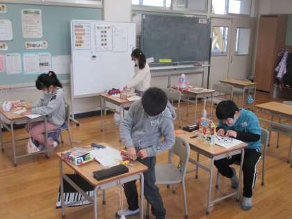 3年生は理科の「明かりをつけよう」でどんな物が電気を通すかを予想しながら実験を行いました。豆電球をつないだ装置を使って明かりがつく物を確かめました。自分の予想と異なる物がたくさんあって、みんな驚いていました。