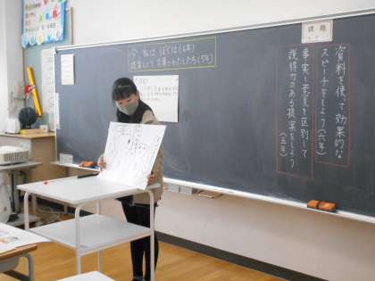 今年度最後の学習参観がありました。高学年は、国語科のスピーチをしました。テーマに合わせて原稿を作成する、内容に合う資料を選択する、伝え方を工夫しスピーチの練習をするなど、今日の本番を迎えるまで、大変だったと思います。しかし、今日は一人一人自信をもって発表することができました。これまでに学んだことを生かし、他の発表の機会でも、堂々と発表してほしいと思います。