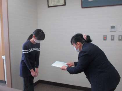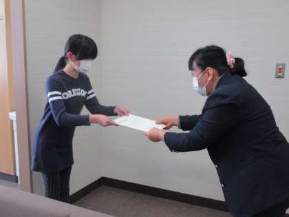 2月21日の昼休みに、富山ユネスコ協会の方に書き損じ葉書を渡しました。書き損じ葉書を集めることで、世界の多くの子供たちが学校に行く機会を得られるそうです。また、富山ユネスコ協会の方からは、感謝状もいただきました。